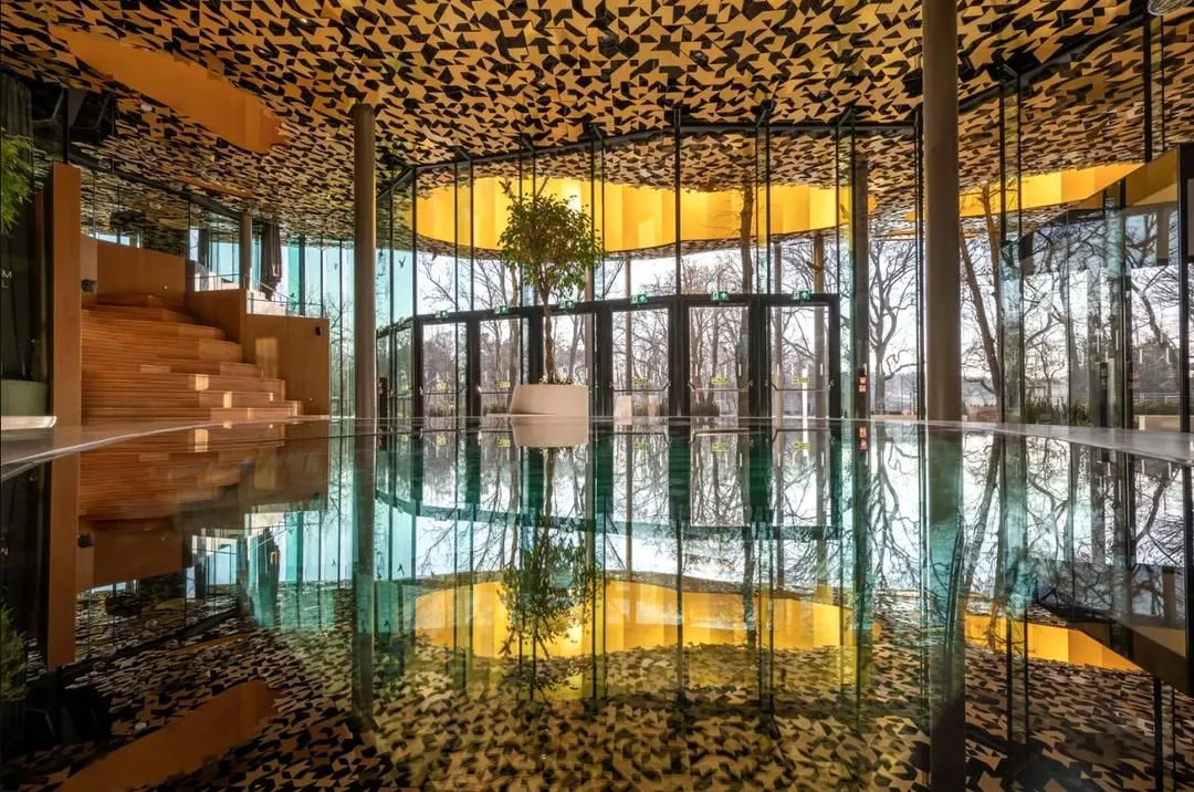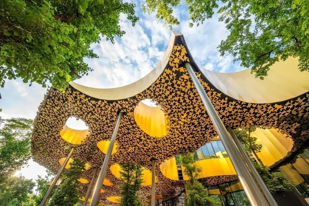 Атмосферы леса достигли благодаря орнаментальным элементам на крыше, напоминающим листья деревьев. Кроме того, через отверстия на крыше будут расти настоящие деревья, а в помещение попадать солнечный свет.