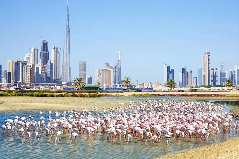 В Дубае можно бесплатно посмотреть на прекрасных птиц фламинго. Лучшее место для этого – заповедник дикой природы Рас-Аль-Хор. Здесь есть тайные хижины, из которых можно понаблюдать за розовыми птицами через бинокль.